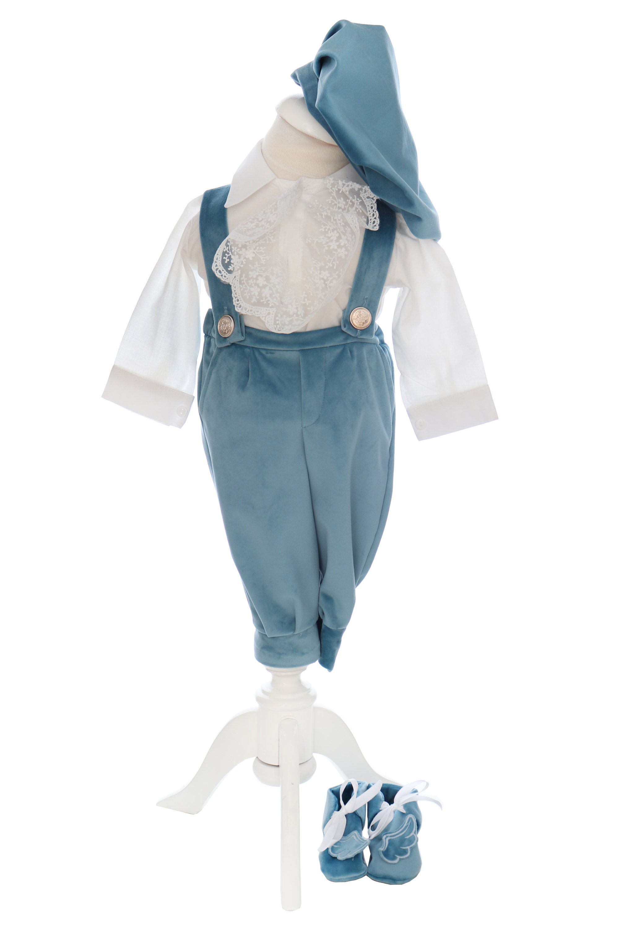 Costum cu aripi pentru botez baieti, bleu compus din 4 piese, camasa, pantaloni, bascuta si pantofiori, Recostore®, REC2749