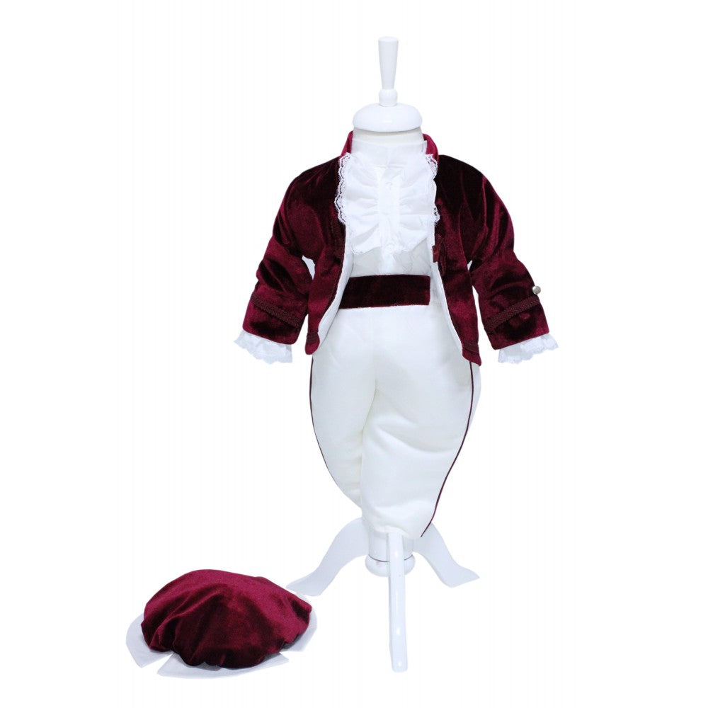 Costum Micul Print�pentru pitici cu stil.Camasa alba cu detalii din dantela este foarte eleganta si este confectionata din bumbac. Se incheie cu nasturi si poate fi purtata la oricare alta tinuta, pentru ca este versatila.Sacoul visiniu din catifea este rafinat si are sistem de inchidere cu nasturi. Este foarte elegant si este potrivit pentru evenimente speciale. Micutul va atrage toate privirile si va primi multe aprecieri din partea invitatilor.Pantalonii sunt confectionati dintr-un material de calitate si captusiti cu bumbac la interior. Se muleaza perfect pe corpul oricarui baietel si sunt usor de imbracat, deoarece sunt prevazuti cu elastic in talie.Palaria este un accesoriu indispensabil si elegant care completeaza tinuta si ii da un aer aristocrat.Costumul poate fi purtat la orice ocazie speciala cum ar fi botez sau orice eveniment important.Intregul costum este realizat in Romania de catre cei mai iscusiti croitori.