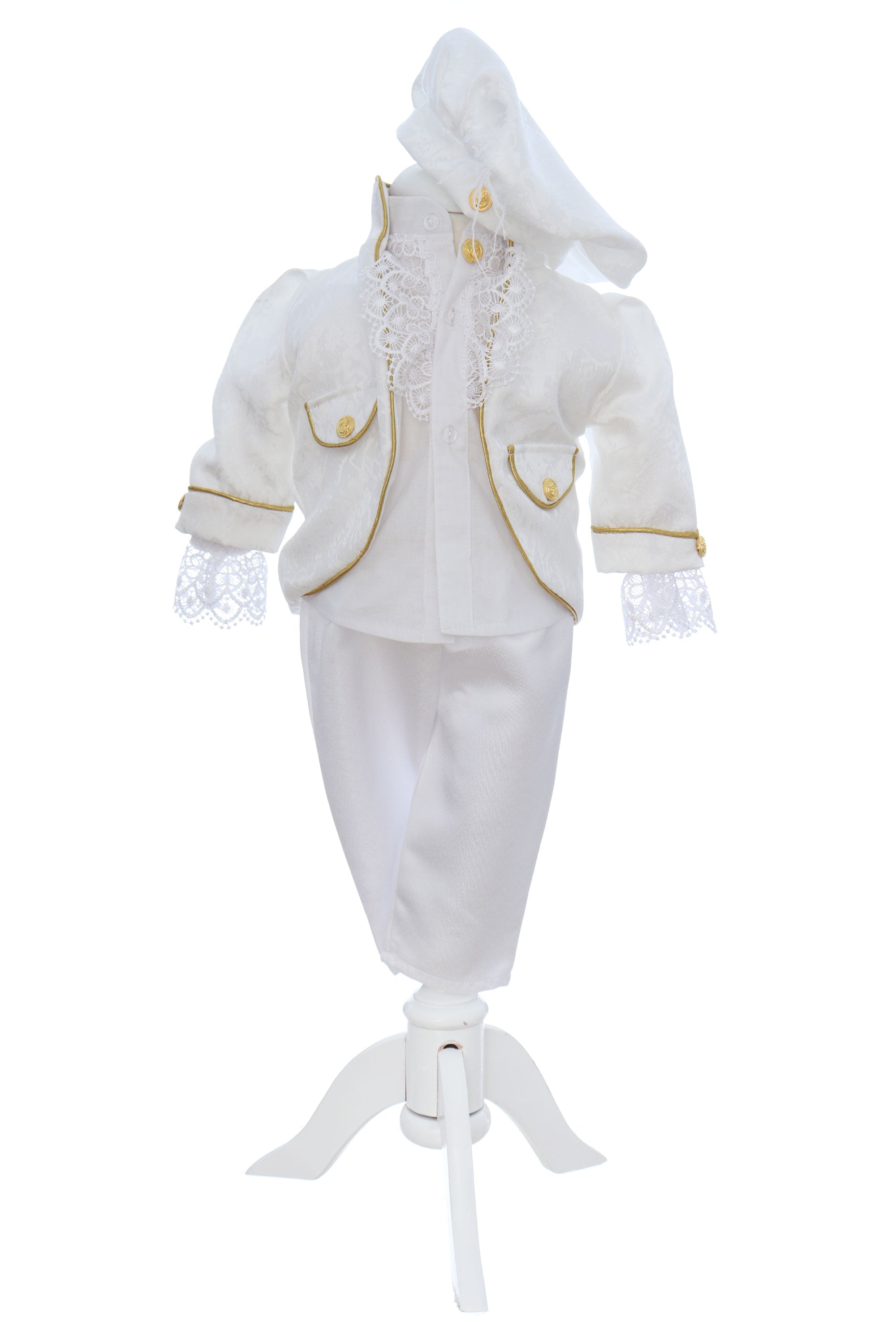 Costum print pentru botez baieti, 4 piese, alb, REC3354