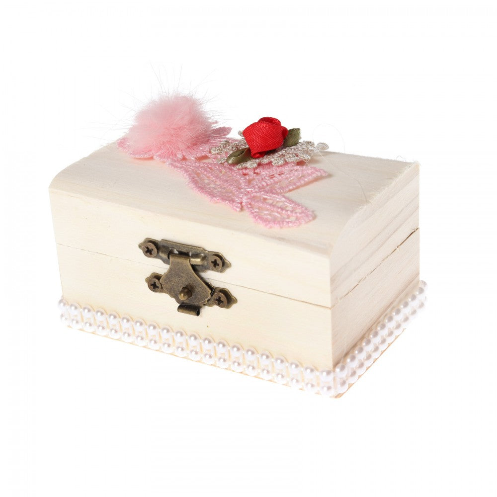 Prima suvita de par este o amintire memorabila pentru parintii bebelusului si nasi. De aceea noi va punem la dispozitie o cutiuta cufar pentru a pastra vesnic suvita de par si care peste ani va fi comoara dumneavoastra nepretuita. Cutiuta cufar este confectionata din lemn si are sistem de inchidere. Este decorata cu dantela si margele pentru un aspect deosebit.