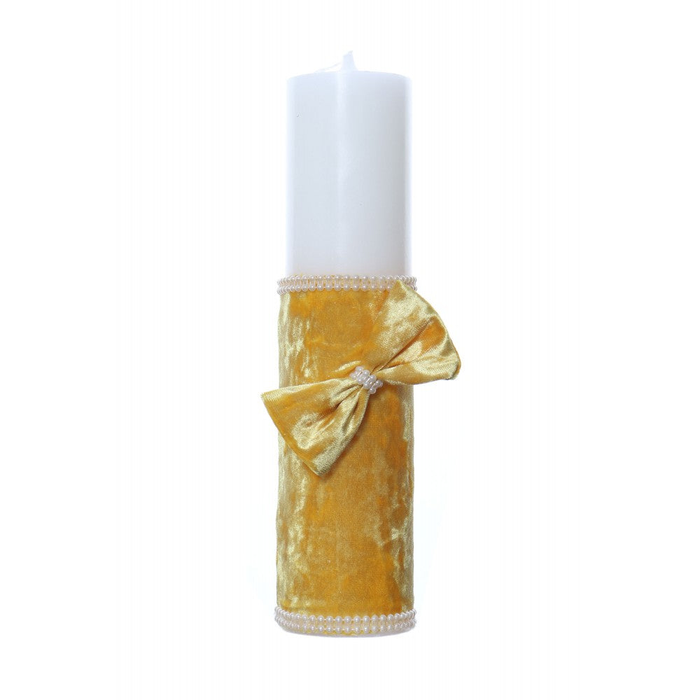 Lumanare botez accesorizata cu catifea galbena, 28 cm, Recostore, REC2154