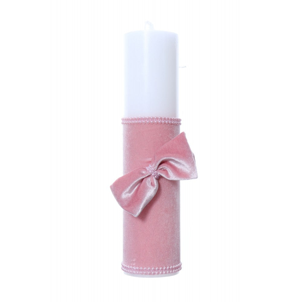 Lumanare botez accesorizata cu catifea roz, 28 cm, Recostore, REC2159