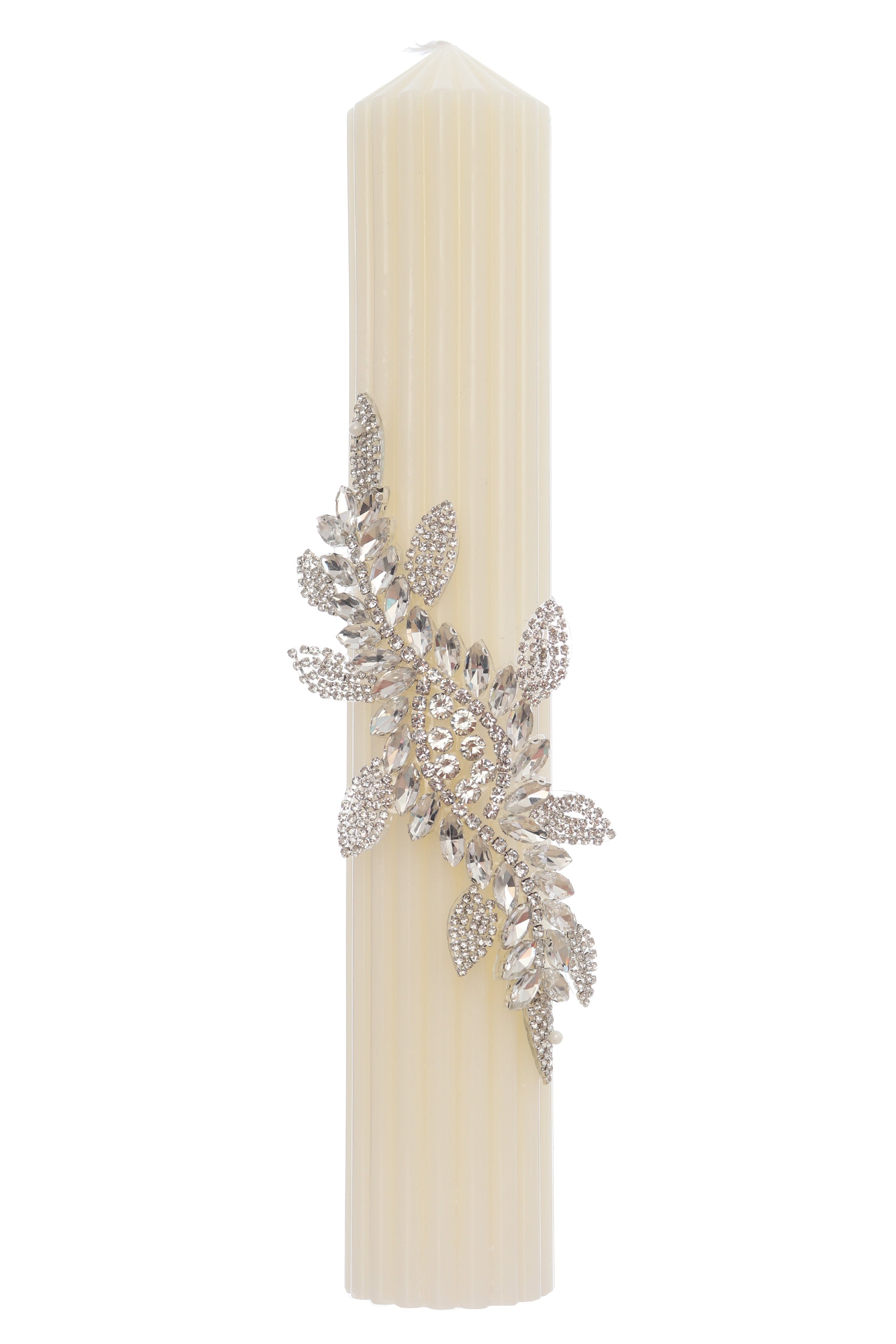 Lumanarea de botez canelata, accesorizata cu accesoriu floral pretios este alegerea perfecta pentru a aduce o nota de eleganta si delicatete ceremoniei de botez. Cu dimensiuni de 35x6 cm, aceasta lumanare este atent lucrata pentru a oferi un aspect rafinat si sofisticat.