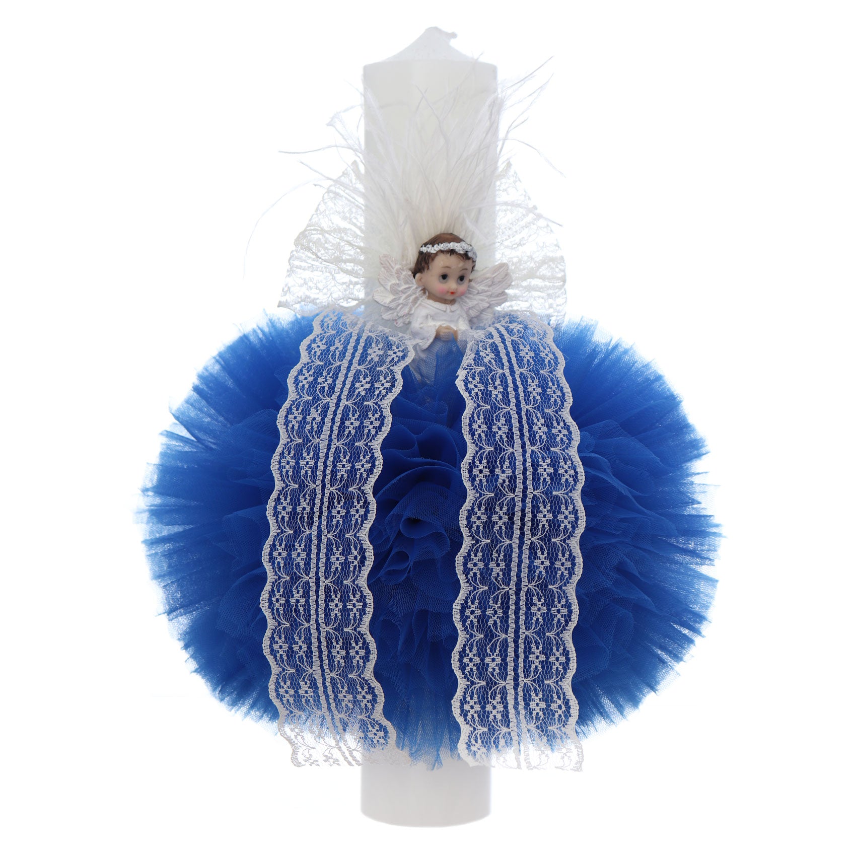 Lumanare botez, ingeras, 30x5.5 cm, albastru electric, Recostore®, REC5004/4