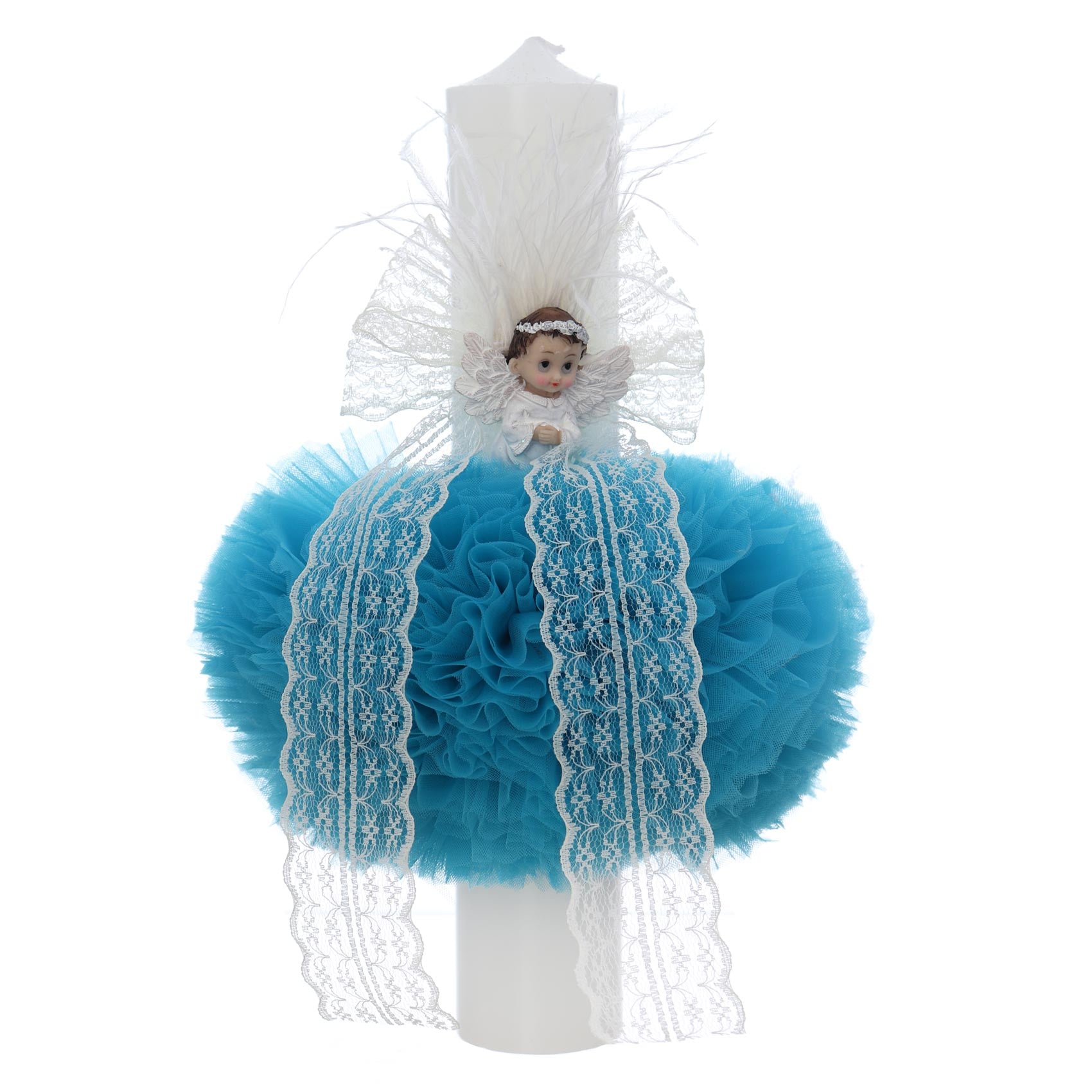 Lumanare botez, ingeras, 30x5.5 cm, turcoaz, Recostore®, REC5004/3