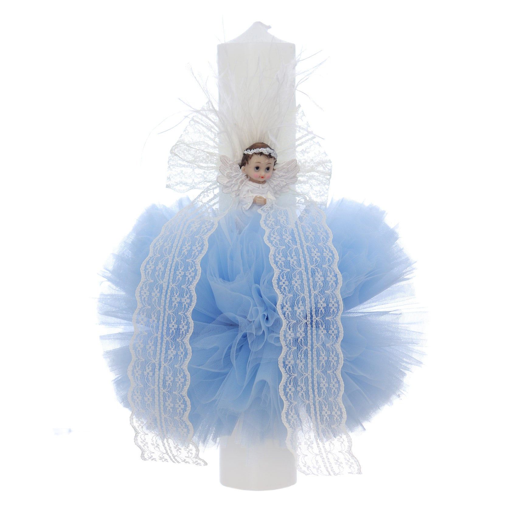 Lumanare botez, ingeras, 30x5.5 cm, bleu, Recostore®, REC5004/2