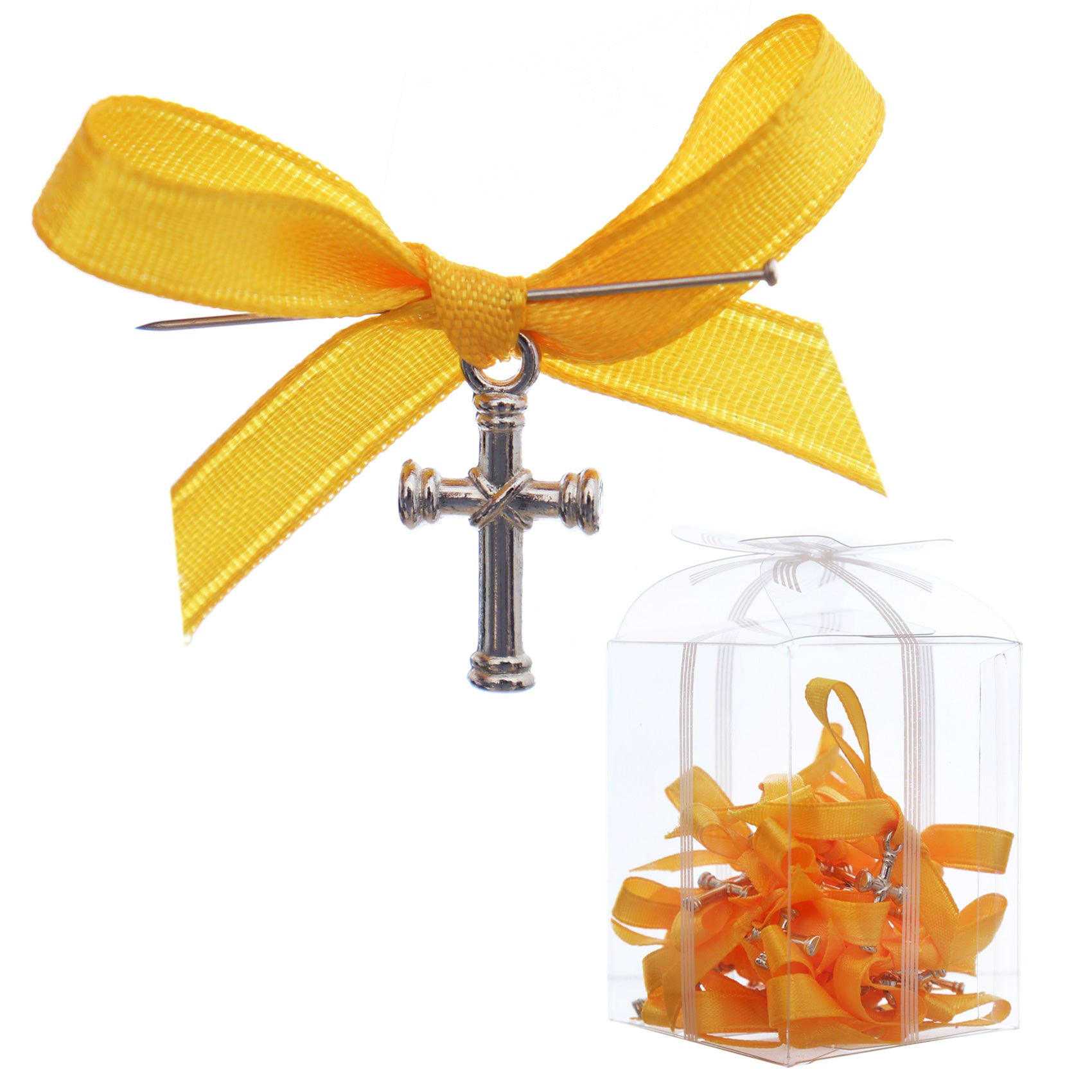 Marturii cruciulite pentru botez, set 20 bucati, funda portocalie, REC1968/67
