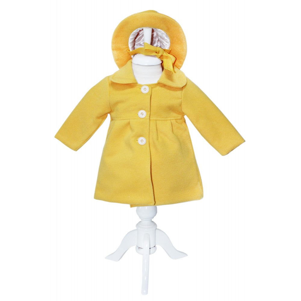 Palton din lana cu palarie pentru fete, galben mustar, REC1608