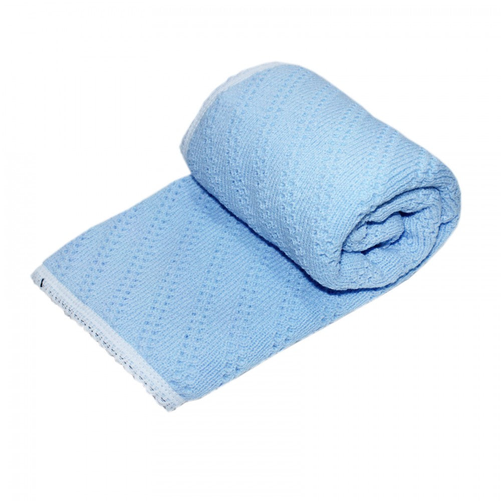 Paturica tricotata dublata pentru bebelusi, acril-bumbac, albastru, 75x75 cm, Recostore, REC1653