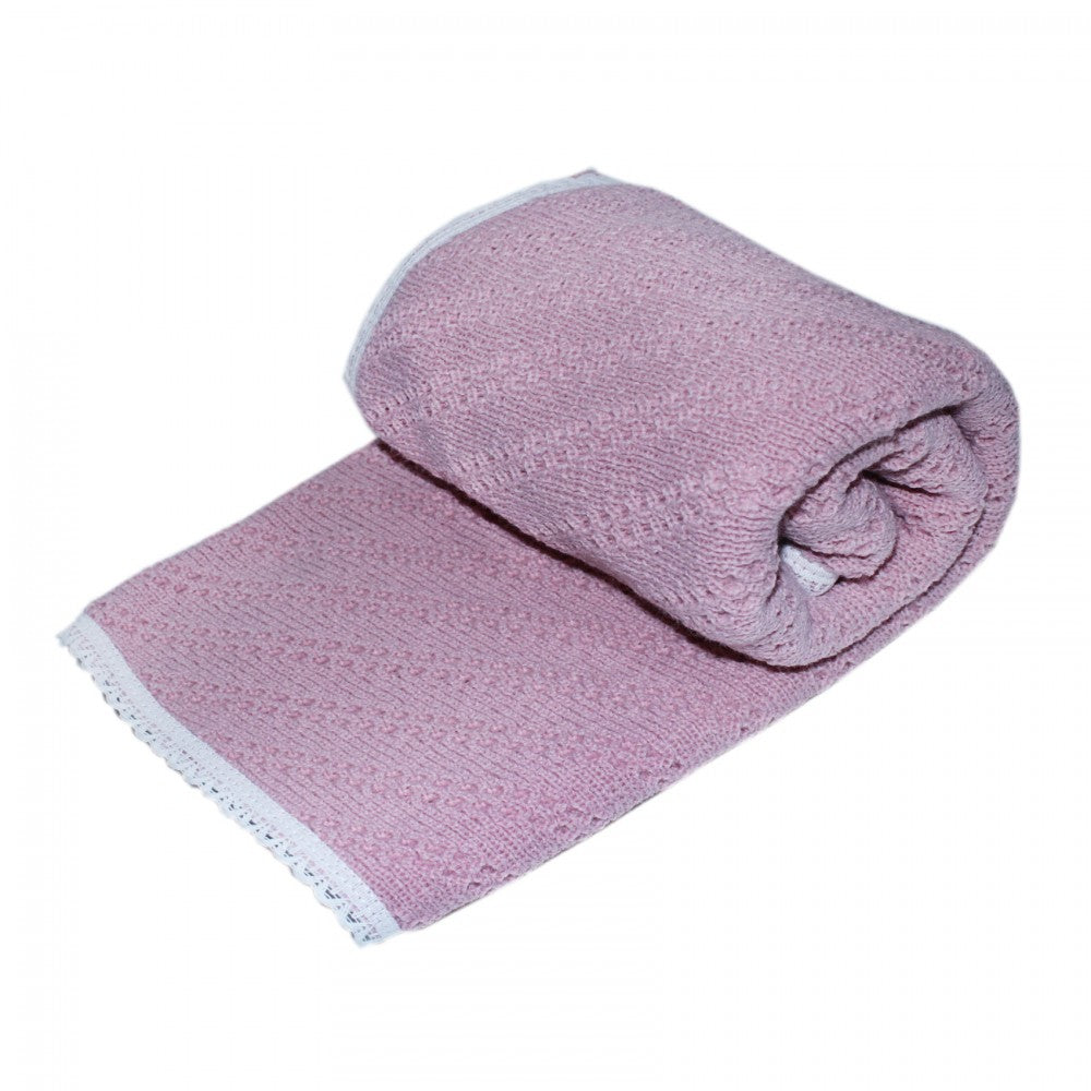 Paturica tricotata dublata pentru bebelusi, acril-bumbac, roz pudrat, 75x75 cm, Recostore, REC1650