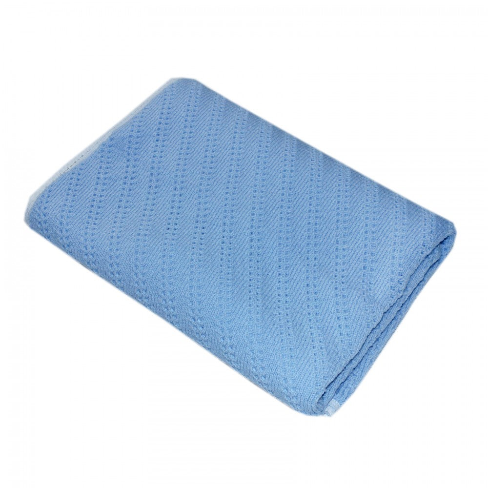Paturica tricotata dublata pentru bebelusi, acril-cocolino, albastru, 75x75 cm, Recostore, REC1657