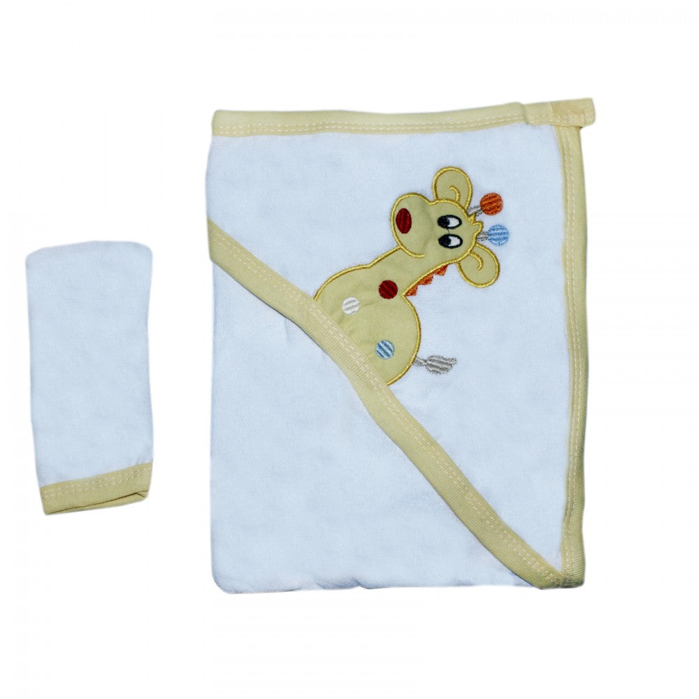 Prosop cu capison si manusa pentru bebelusi, alb-galben, 90x70 cm, Recostore, REC1634