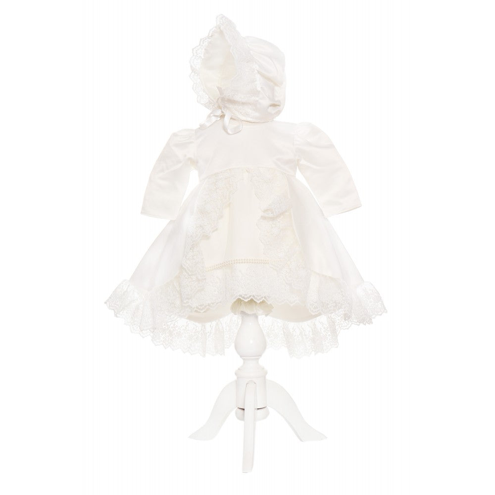 Rochie alb-ivoire pentru botez, 4 piese, rochie, bolero, palarie, pantaloni pentru fetite, REC1842