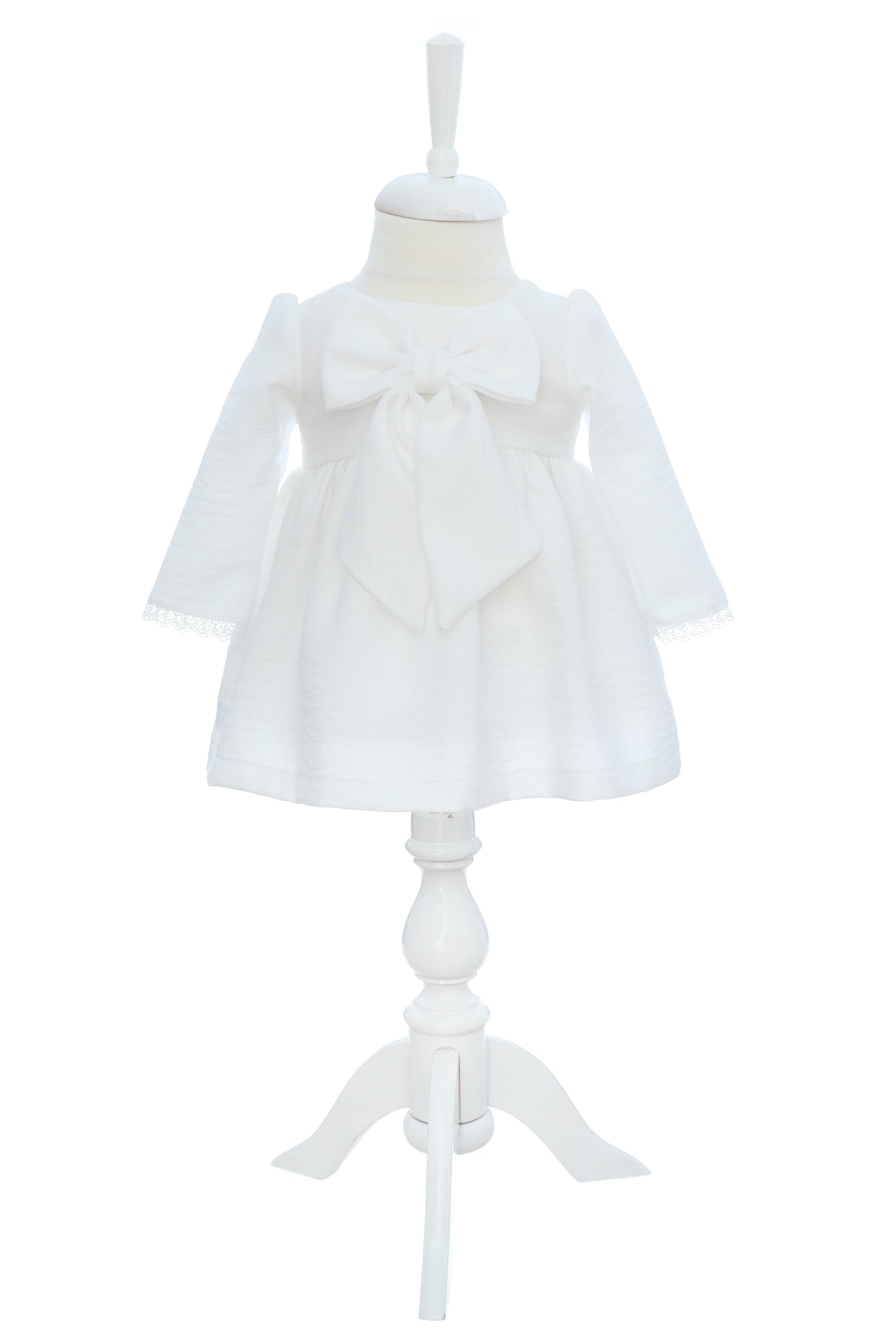 Rochie alba cu fundita pentru botez fetita, REC3340