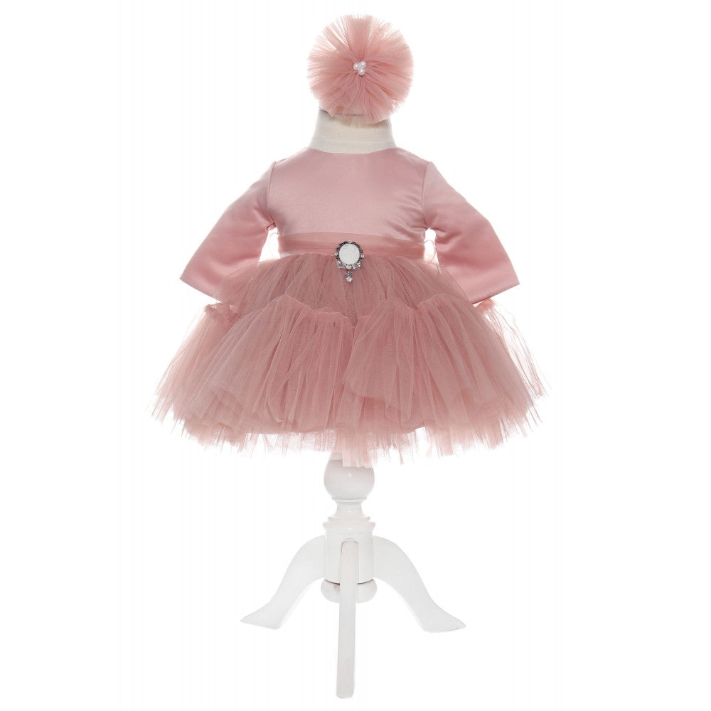 Rochie roz pudrat pentru botez, 2 piese bentita si rochie, Recostore, REC1696