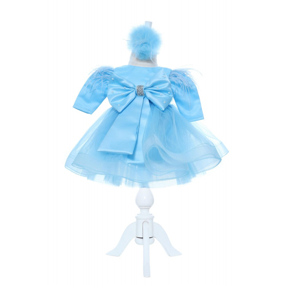 Rochita bleu cu fundita pentru botez de fetite, 2 piese, Recostore, REC2376