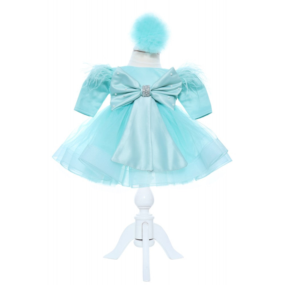 Rochita verde menta cu fundita pentru botez de fetite, 2 piese, Recostore, REC2379