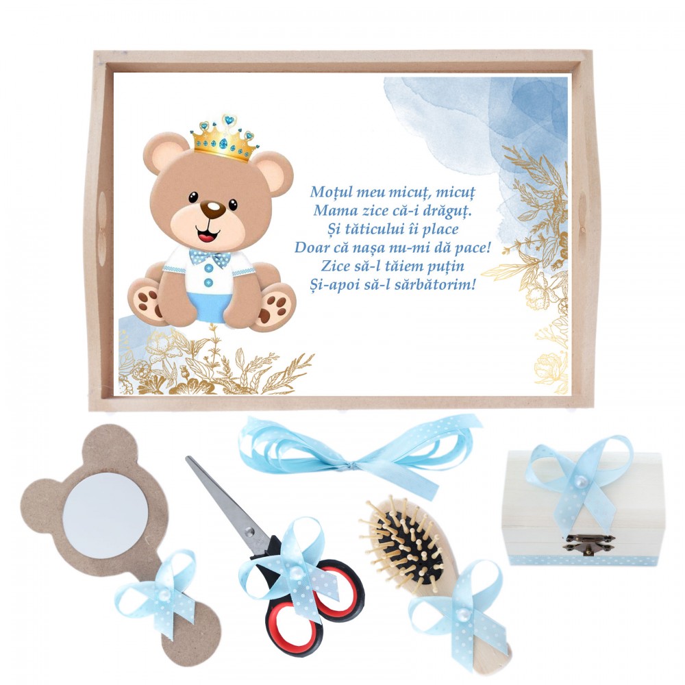 Set tava pentru taiere mot la baieti, model ursulet, bleu, 6 piese, 35x20 cm, REC1967/148