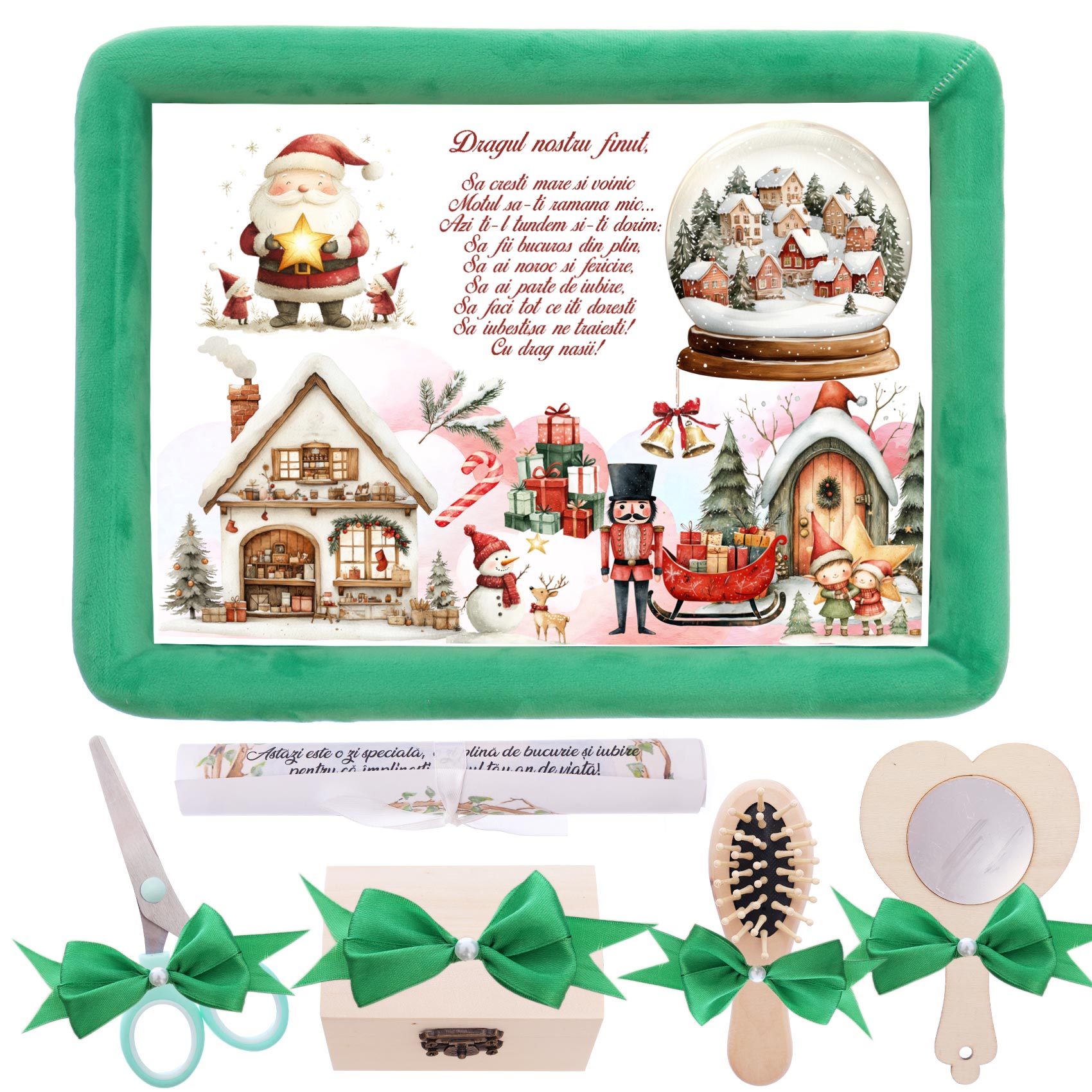 Tava mot fete/baieti, aniversare 1 an, Mos Craciun, catifea verde, 7 piese, 34x25 cm, REC5011/31