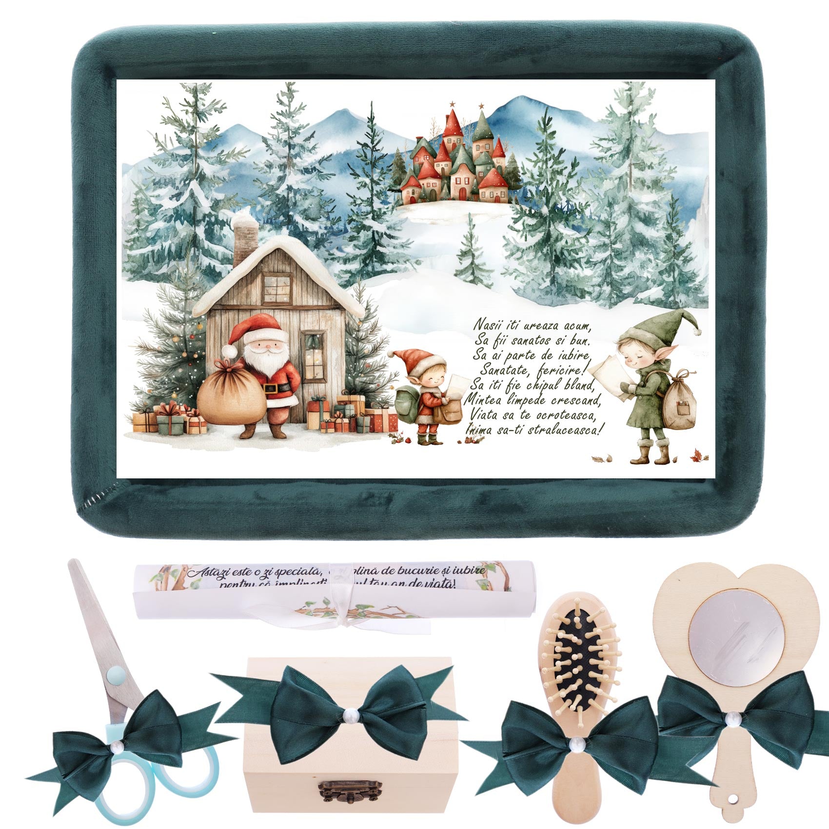 Tava mot fete/baieti, aniversare 1 an, Mos Craciun si Elfi, catifea verde, 7 piese, 34x25 cm, REC5011/32