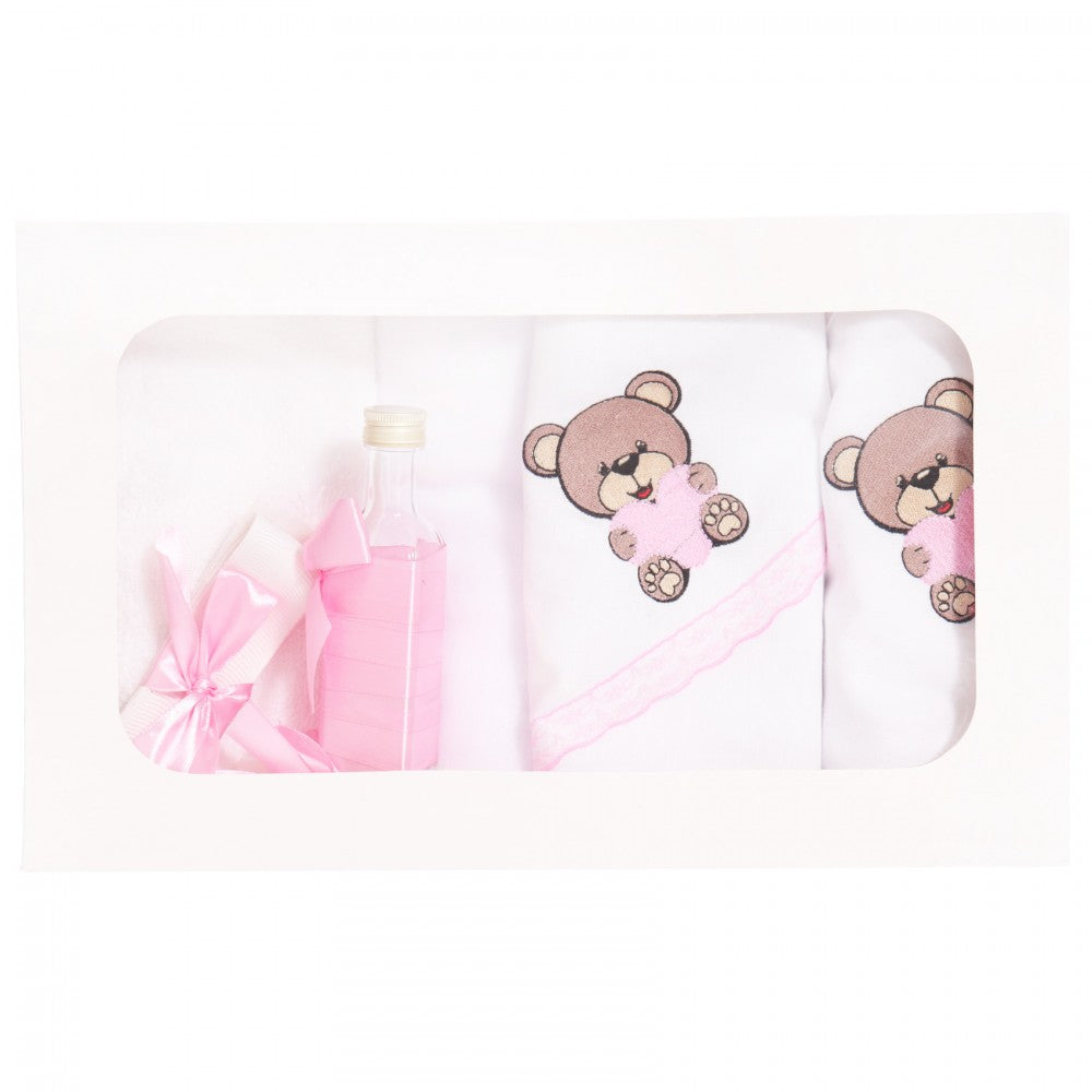 Trusoul include:� Sticluta transparenta pentru mir� Sapun� Panza mir brodata cu ursulet, dimensiune aproximativa 95 x 100 cm� Fasa alba dimensiune aproximativa 100 x 5cm� Prosop cu capison pentru bebelus, brodat cu ursulet, dimensiune aproximativa 78 x 75 cm� Prosop alb pentru preot, dimensiune aproximativa 50 x 90 cm� Paturica bebe, 70 x 70 cm