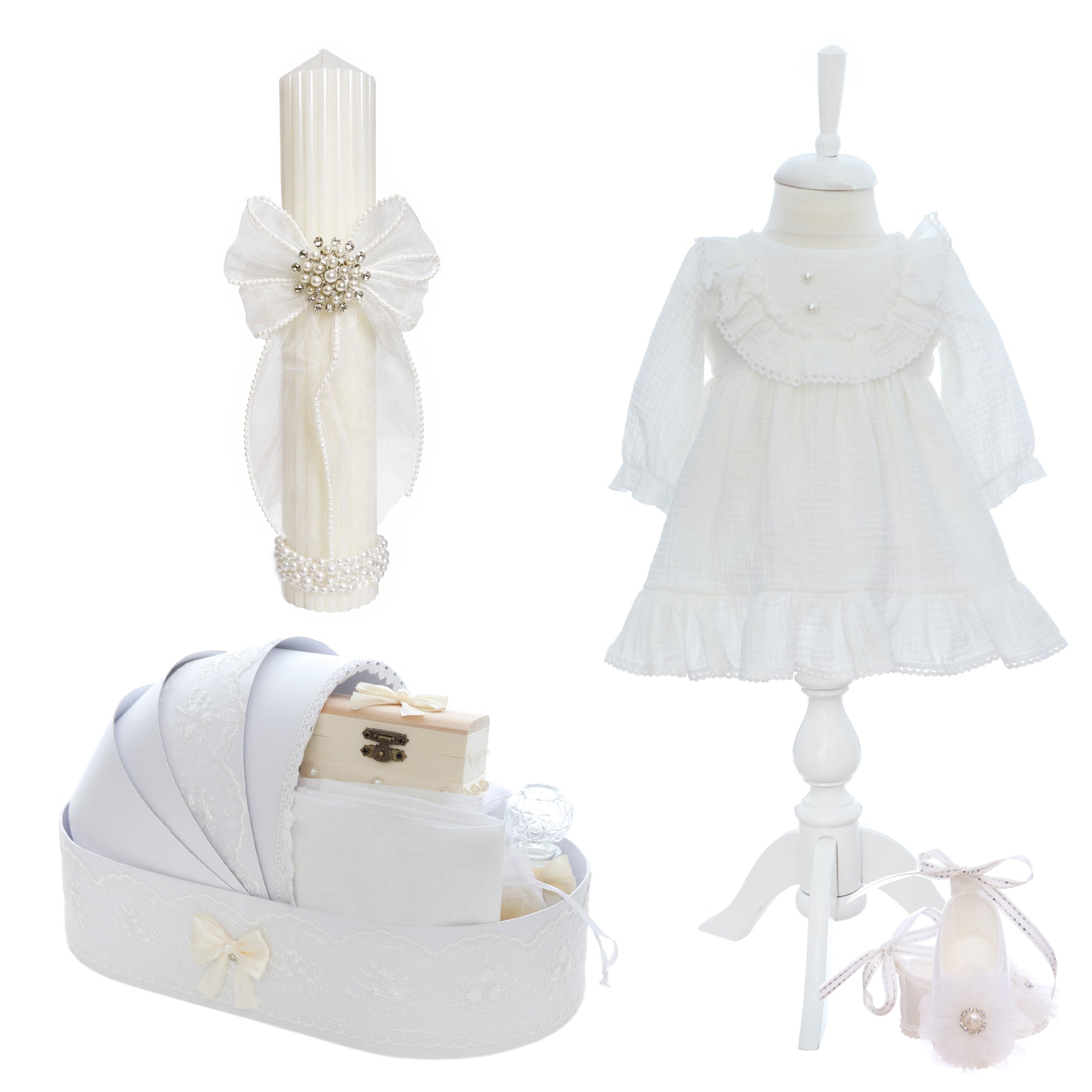 Acest trusou de botez reuneste toate piesele necesare pentru unul dintre cele mai emotionante momente din viata unui bebelus – Taina Sfantului Botez. Realizat din materiale moi si atent alese, trusoul imbina simplitatea cu simbolistica traditiei, fiind potrivit pentru orice ceremonie religioasa.